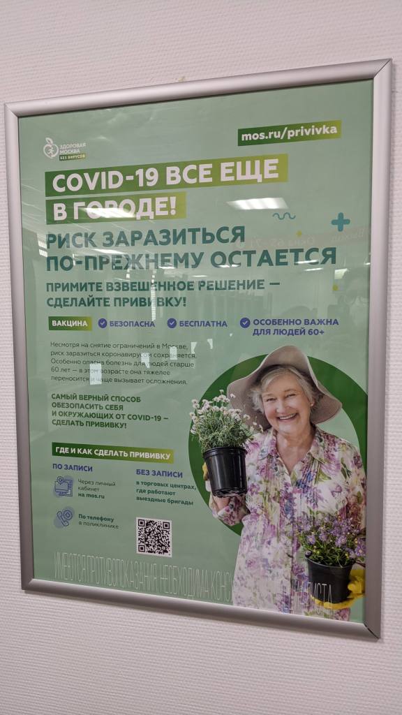 The implementation of QR codes made Moscow’s response in 2020 famous, but the first use of these was actually in Kazan. From 15 April 2020, QR codes in Moscow were required for internal movement. In reality though, the limits on mobility without the use of codes was hazy – taking out rubbish, walking pets 100m from residence all allowed Muscovites to test the practical limits. Of note is the enrolment as ‘police’ of Moscow’s taxi drivers – now required to check QR codes of their passengers, as were turnstile controllers employed by Moscow Transit Authority. By the end of April, a ‘social monitoring’ app was imposed on the infected to enforce ‘home quarantine’. The ‘mask-glove regime’ was introduced in May 2020 and is absurdly still in force as of November 2021, although since summer 2021 I have rarely seen anyone in transit wearing gloves. Interestingly, the full regime seems to be only enforced in one of the higher-end shopping chains.