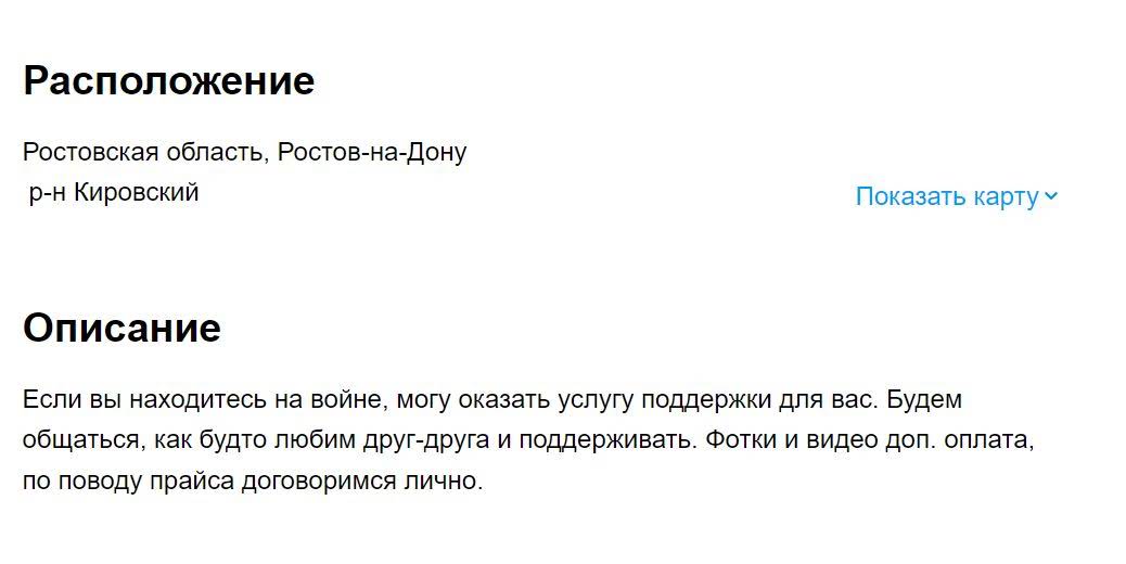 I leave you with this advertisement for war-time intimacy from Rostov: ‘If you’re at war I can provide a service to support you. We’ll communicate as if we love each other and support each other. Photos and video for an additional fee. Agreement about price subject to personal negotiation.’